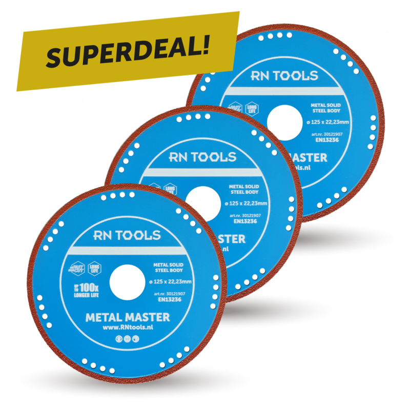 RNtools klanten zochten ook naar: MetalMaster slijpschijf, MetalMaster Doorslijpschijf, Metal Cutting Schijf, Diamant-metaaldoorslijpschijf, Diamant Metaalschijf 125 mm, Diamantschijf 125 mm, Diamant Slijpschijf, Slijpschijf Metaal of Diamant Metaal Doorslijpschijf